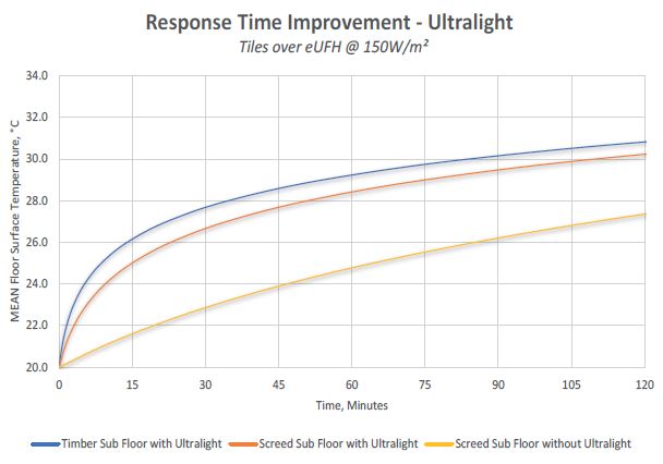Răspunsul termic rapid promovat de stratul de izolație și difuzie permite pardoselii să se încălzească mai rapid, rezultând o pardoseală încălzită mai eficientă din punct de vedere energetic și mai confortabila.